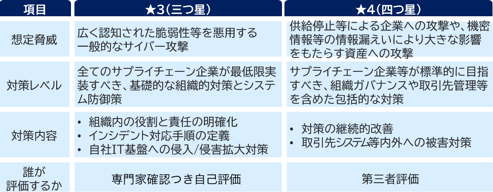 認証レベル★3と★4では要求される対策レベルが異なり、