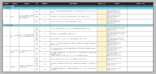- チェックリスト項目についてコンサルタントがヒアリングを行い、現時点での充足状況と要対応項目を整理してレポートします